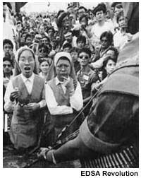 Mula ng maibagsak ang diktadurya at nanungbalik ang ispasyo sa demokrasya, nagbago (above ground) ang arenas ng labanan at nagbigay puwang ang pagsasakapangyarihan at demokratisasyon sa mga pamayanan. Dahil sa iba’tibang konteksto at kadahilanan, ang paghahanap ng kalulugaran at katuturan sa buhay, may malaking bilang ng mga “aktibista at dating aktibista" sa kanayunan at kalunsuran ang naingganyong lumahok at nag-engaged sa lipunang pulitikal o kilusang demokratiko. (Larawan: 1986 Edsa Revolution)
